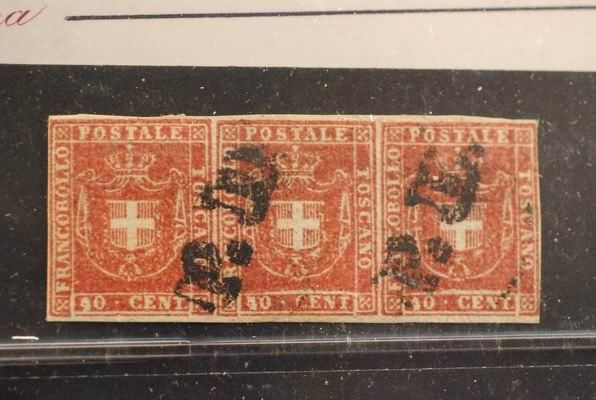 TOSCANA - 1860, Governo provvisorio, 40 c. carminio (21) striscia orizzontale...