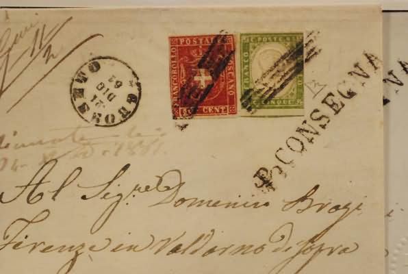 TOSCANA - 1861, Governo provvisorio, affrancatura mista composta da Toscana...