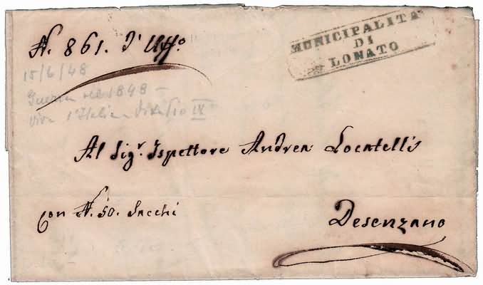 RISORGIMENTO - 1848, I GUERRA D'INDIPENDENZA, piego ammministrativo da Lonato...