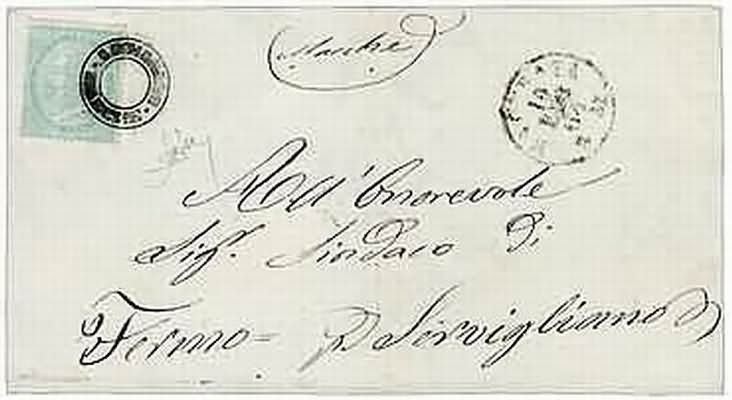Lotto 1539 | REGNO D'ITALIA ANNULLAMENTI - 1864, APPIGNANO / MARCHE, bollo locale a doppio...