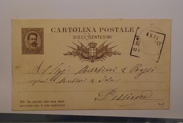 REGNO D'ITALIA ANNULLAMENTI - 1887, ASTI/MESSAGGERE/COLLETTORE, quadrato su intero di Umberto da 10 c., diretto a Pessione.(LETTERA)