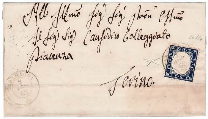 Lotto 1546 | REGNO D'ITALIA ANNULLAMENTI - 1862, CARAMAGNA (p.13) su 20 c.indaco con...