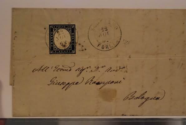 REGNO D'ITALIA ANNULLAMENTI - 1862, SOGLIANO/FORLI' doppio cerchio (p.8) su 20 c. (2) su lettera per Bologna, 22/11/62.(LETTERA)