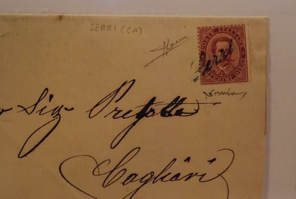 Lotto 1585 | COLLETTORIE - 1885, SERRI corsivo azzurro annullatore di 10 c. (38) su piego...