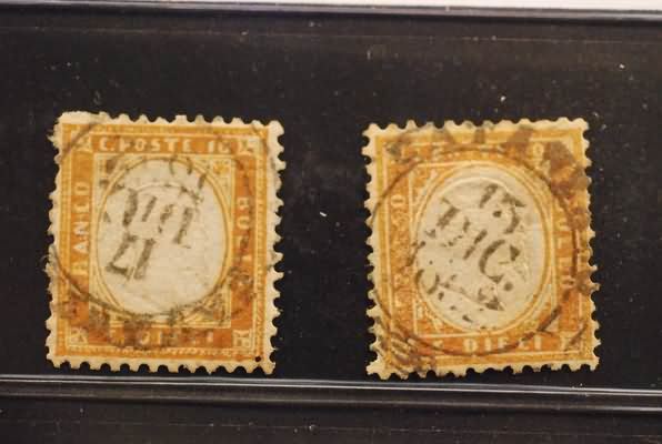 REGNO D'ITALIA - 1862, 10 c. bistro arancio (1g) 2 esemplari. (Chiavarello).(USATO)