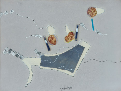 SERGIO DANGELO Milano 1932 Senza titolo, 1967 tecnica mista e collage su tela cm. 30x40, firma e anno in basso al centro.