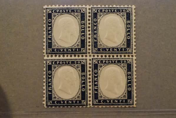 REGNO D'ITALIA - 1862, 20 c. indaco chiaro (2b) quartina, ben centrato.(GOMMA...
