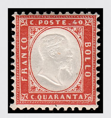 REGNO D'ITALIA - 1862, 40 c. rosso carminio (3) fresco e centrato. (G....