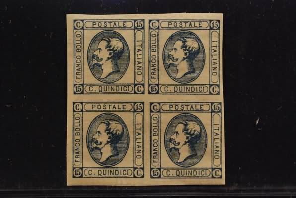 REGNO D'ITALIA - 1863, 15 c.azzurro, II tipo (13) blocco di 8.(GOMMA INTEGRA)