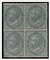 REGNO D'ITALIA - 1863, Tiratura di Torino, 5 c.verde grigio (T16) blocco di quattro ben centrato. Raro. (Cert. R. Diena)(GOMMA INTEGRA)