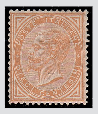 REGNO D'ITALIA - 1866, 10 c. giallo ocra (T17) molto ben centrato. (Cert.Sorani).(GOMMA ORIGINALE)