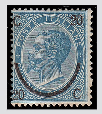 REGNO D'ITALIA - 1865, 20 c. su 15 c. azzurro I tipo (23). (Cert. R....