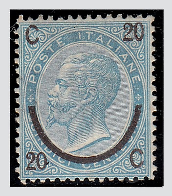 REGNO D'ITALIA - 1865, 20 c. su 15 c celeste III tipo (25) discreta...