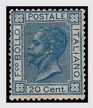 REGNO D'ITALIA - 1867, 20 c. azzurro (T26) di buona centratura. (G. Oliva. Cert. R. Diena).(GOMMA INTEGRA)