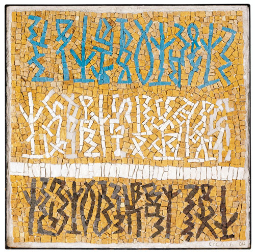 RICCARDO LICATA Torino 20/12/1929 Senza titolo, 2000 mosaico cm. 50x50, firma e anno incisi in basso al destra, pubblicato sul catalogo della mostra Riccardo Licata mosaici e vetri a cura di Giovanni Granzotto e Rosa Barovier Mentasti tenutasi presso il Palazzo Ducale di Venezia dal 29/05 al 20/09/2009, pagina 62.
