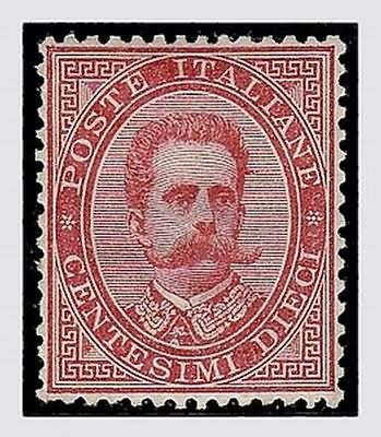 REGNO D'ITALIA - 1879, Umberto I, 10 c. carminio (38), ben centrato.(GOMMA ORIGINALE)
