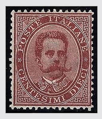 REGNO D'ITALIA - 1879, Umberto I, 10 c. carminio (38) buona centratura.(GOMMA ORIGINALE)