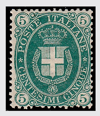 REGNO D'ITALIA - 1889, Umberto I, 5 c. verde scuro (44). (Cert. R....