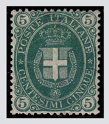 Lotto 1862 | REGNO D'ITALIA - 1889, Umberto I, Stemma 5 c. verde scuro (44) molto ben...