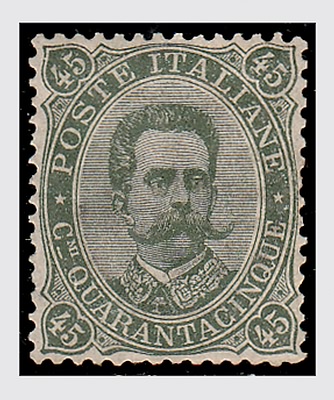REGNO D'ITALIA - 1889, Umberto I, 45 c. verde oliva (46) ben centrato....