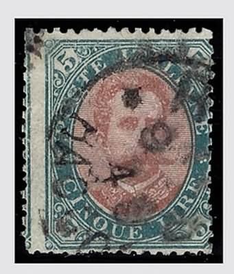 REGNO D'ITALIA - 1889, Umberto I, 5 lire verde e carminio (49). (Cert. Biondi).(USATO)