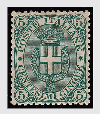 REGNO D'ITALIA - 1891, Umberto I, Stemma 5 c. verde (59). (Cert. R. Diena).(GOMMA INTEGRA)