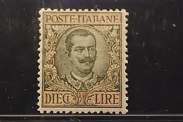REGNO D'ITALIA - 1910, Floreale, 10 lire (91) ben centrato.(GOMMA ORIGINALE)