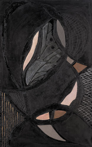 ENRICO BORDONI Altare (Sv) 1904 - Altare (Sv) 06/09/1969 Alkè, concetto d'ornamentalità n° 6, 1961 tecnica mista su tela cm. 130x81, firma, titolo, anno, etichetta del Premio Repubblica di San Marino 1961 ed etichetta della Galleria Valente Arte Contemporanea (Finale Ligure) e dichiarazione d'autenticità a firma Pagani datata maggio 1973 al retro.