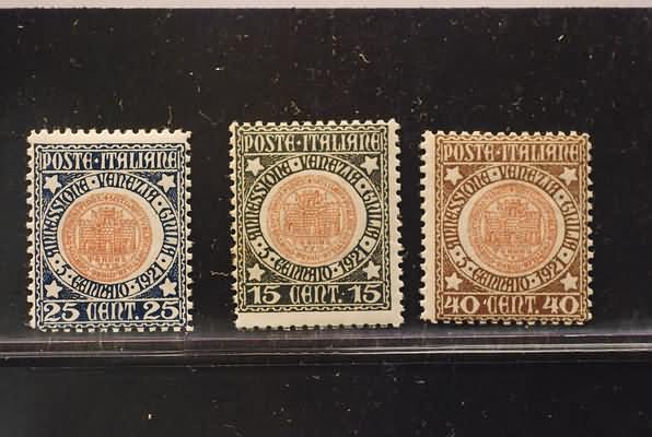 REGNO D'ITALIA - 1921, Annessione Venezia Giulia, 3 valori cpl. (113/15). Il...