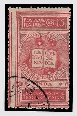 REGNO D'ITALIA - 1921, Dante Alighieri, 15 c.rosa (116B). Raro. (Cert. Caffaz).(USATO)