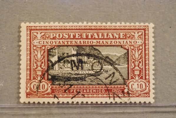 REGNO D'ITALIA - 1923, Manzoni, 10 c. carminio e nero (151). (Caff.).(USATO)