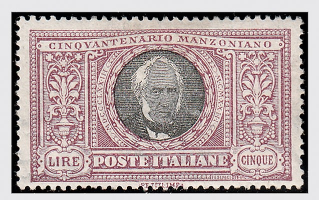 REGNO D'ITALIA - 1923, Manzoni, 5 lire (156). (Cert. R. Diena).(GOMMA INTEGRA)