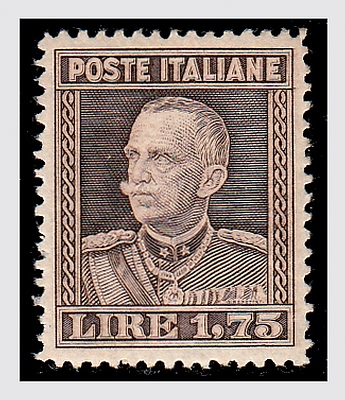 REGNO D'ITALIA - 1929, Vittorio Em.III, lire 1,75 bruno dent. 13 e 3/4 (242). Rarità in ottimo stato di conservazione per freschezza e centratura. (Cert.Oliva - Cert. A.Diena esteso - Cert.E.Diena).(GOMMA INTEGRA)