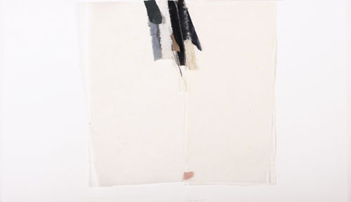 carta, tela e acquerello su carta cm. 36x62, firma e anno in basso al centro, titolo, firma, anno, tecnica ed etichetta della Galleria Valente Arte Contemporanea (Finale Ligure) al retro, entro teca in plexiglass, pubblicato sul catalogo della mostra "De Alexandris, carte" a cura di Claudio Cerritelli, tenutasi presso la Galleria Valente Arte Contemporanea (Finale Ligure) nel giugno-luglio 2006 al numero 18.