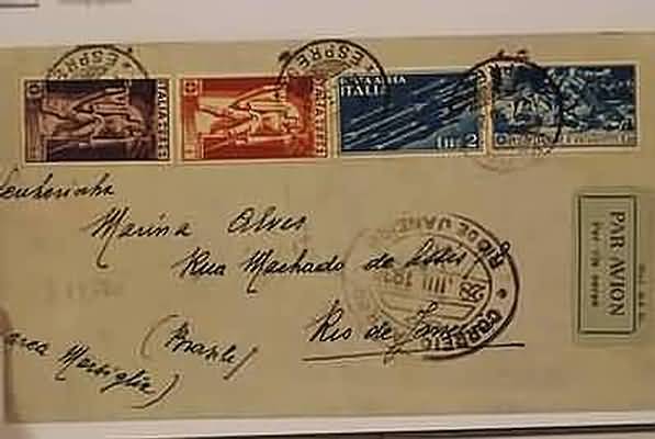 REGNO D'ITALIA - 1930, Posta aerea, Ferrucci 5+2 lire (20) + 1 lira (19) + 1,25 lire (279) + Imperiale 2 lire (A.15) su aerogramma da Spezia per Rio de Janeiro, 14/7/30.(LETTERA)