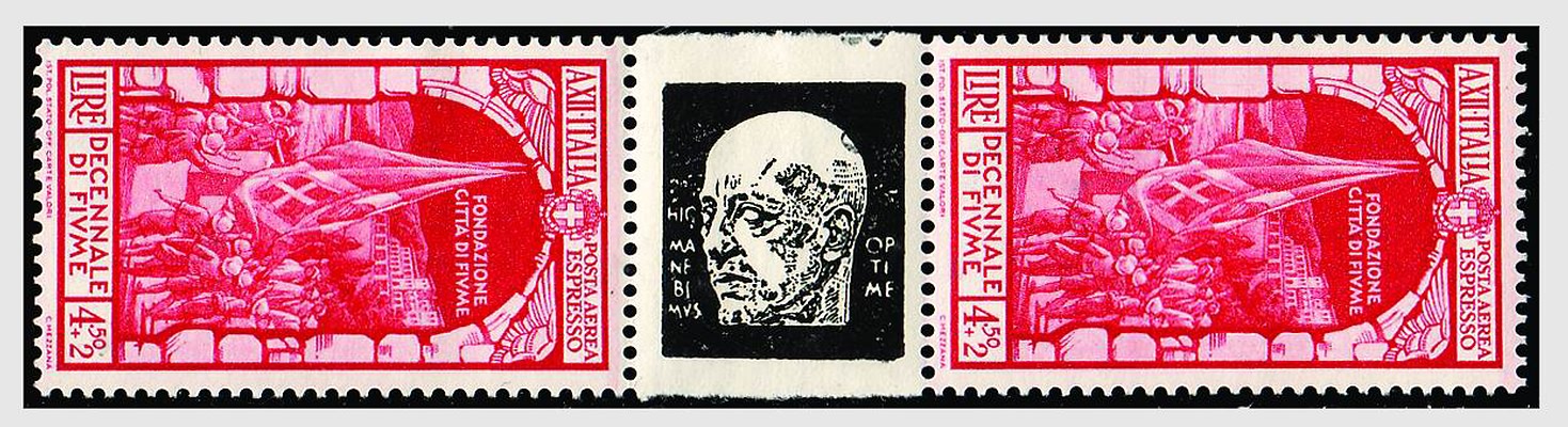 REGNO D'ITALIA - 1934, Posta aerea, Annessione di Fiume, 9 valori cpl. (60/68) due serie con interspazio sul quale e' stampato privatamente l'effigie di D'Annunzio. Alcuni esemplari con aderenze di carta.(GOMMA INTEGRA)