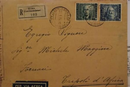 REGNO D'ITALIA - 1939, Posta aerea, Impero 2 lire + 25 c. (114+111) su aerogramma raccomandato da Roma per Tripoli, 23/1/39.(LETTERA)