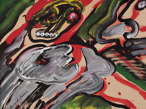 BENGT LINDSTROM Stoccolma 1925 - Njurunda 30/01/2008 La grande fete, (1975) acrilici su carta intelata cm. 55,5x74,5; firma in basso a sinistra, opera registrata presso l'Archivio Bengt Lindstrom a cura dell'Association des Amis de L'oevre de Bengt Lindstrom come da dichiarazione su foto.