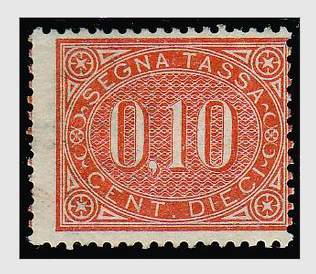 REGNO D'ITALIA - 1869, Segnatasse, 10 c.bruno arancio (2). (Cert. Raybaudi "buono stato").(GOMMA ORIGINALE)