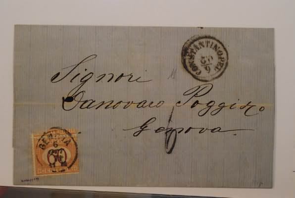 REGNO D'ITALIA - 1871, Segnatasse 60 c. ocra e carminio (10) applicato a Genova, 6/10/71, su lettera non affrancata da Costantinopoli.(LETTERA)
