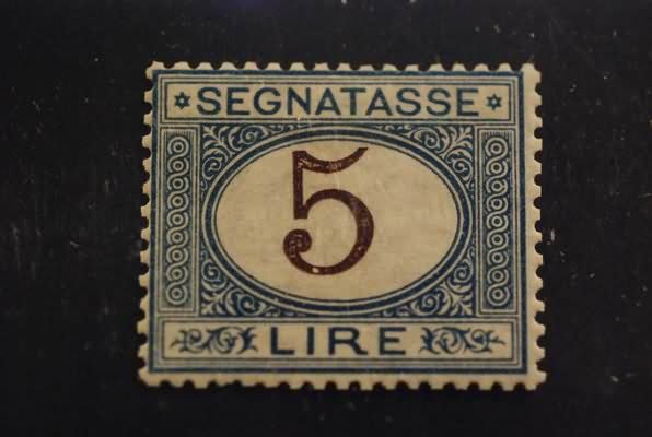 REGNO D'ITALIA - 1874, Segnatasse, 5 lire azzurro e bruno (13) di bella qualità.(GOMMA ORIGINALE)