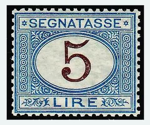 Lotto 2561 | REGNO D'ITALIA - 1874, Segnatasse, 5 l. azzurro e bruno (13)...