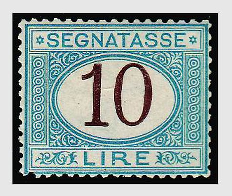 Lotto 2567 | REGNO D'ITALIA - 1874, Segnatasse, 10 lire azzurro e bruno (14) ottimamente...