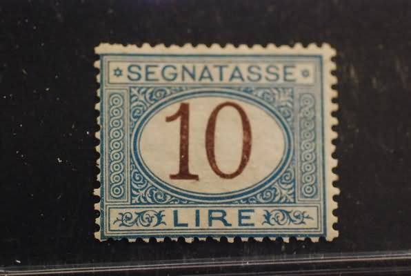 REGNO D'ITALIA - 1874, Segnatasse, 10 lire azzurro e bruno (14) senza gomma, ben centrato.(SENZA GOMMA)