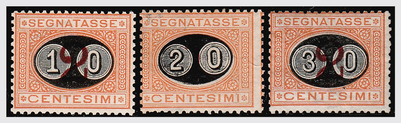 Lotto 2584 | REGNO D'ITALIA - 1890-91, Segnatasse, 3 valori cpl. "mascherine" (17/19)....