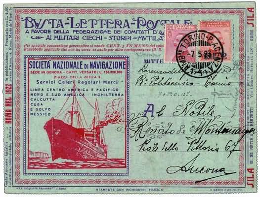 REGNO D'ITALIA - 1923, BLP, 20 c. soprastampa litografica II tipo (7) + Michetti 30 c. (127) su BUSTA LETTERA da Torino per Ancona, 7/5/23. Bella qualità. (Donnini, Cert. Sottoriva).(LETTERA)