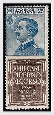 REGNO D'ITALIA - 1924, Pubblicitari, 25 c.azzurro e bruno PIPERNO (6). (Cert....