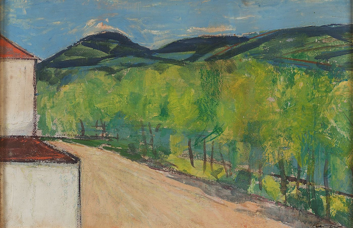 MENZIO FRANCESCO (Tempio Pausania (SS) 1899 - 1979 Torino) - "Lungo il Po", 46x70,5 olio su masonite. Opera firmata in basso a destra