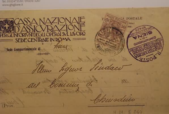 REGNO D'ITALIA - 1924, Parastatali, Cassa Nazionale Assic. Inf. Lavoro 50 c. (21) su piego da Siena per Chiusduio.(LETTERA)
