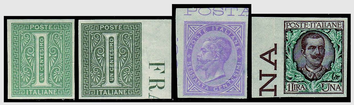 REGNO D'ITALIA - 1863-1924, Saggi e Prove, piacevole lotto di 21 prove d'archivio non dentellate, periodo Vitt.Em.II e Vitt.Em.III. Qualche valore ripetuto, bella qualità. (alcuni A.Diena).(GOMMA INTEGRA)